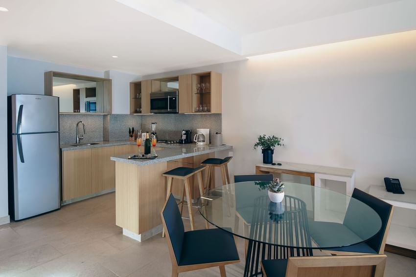 Sunset Plaza - Lujo, sofisticación y pura serenidad. Disfrute de servicios de primera calidad y una cálida hospitalidad mientras disfruta de las vistas panorámicas de la bahía desde cada suite. Desde la cocina gourmet y las mejores bebidas hasta el servicio de mayordomo las 24 horas, cada momento es elevado, especialmente bajo las fascinantes puestas de sol de Puerto Vallarta.